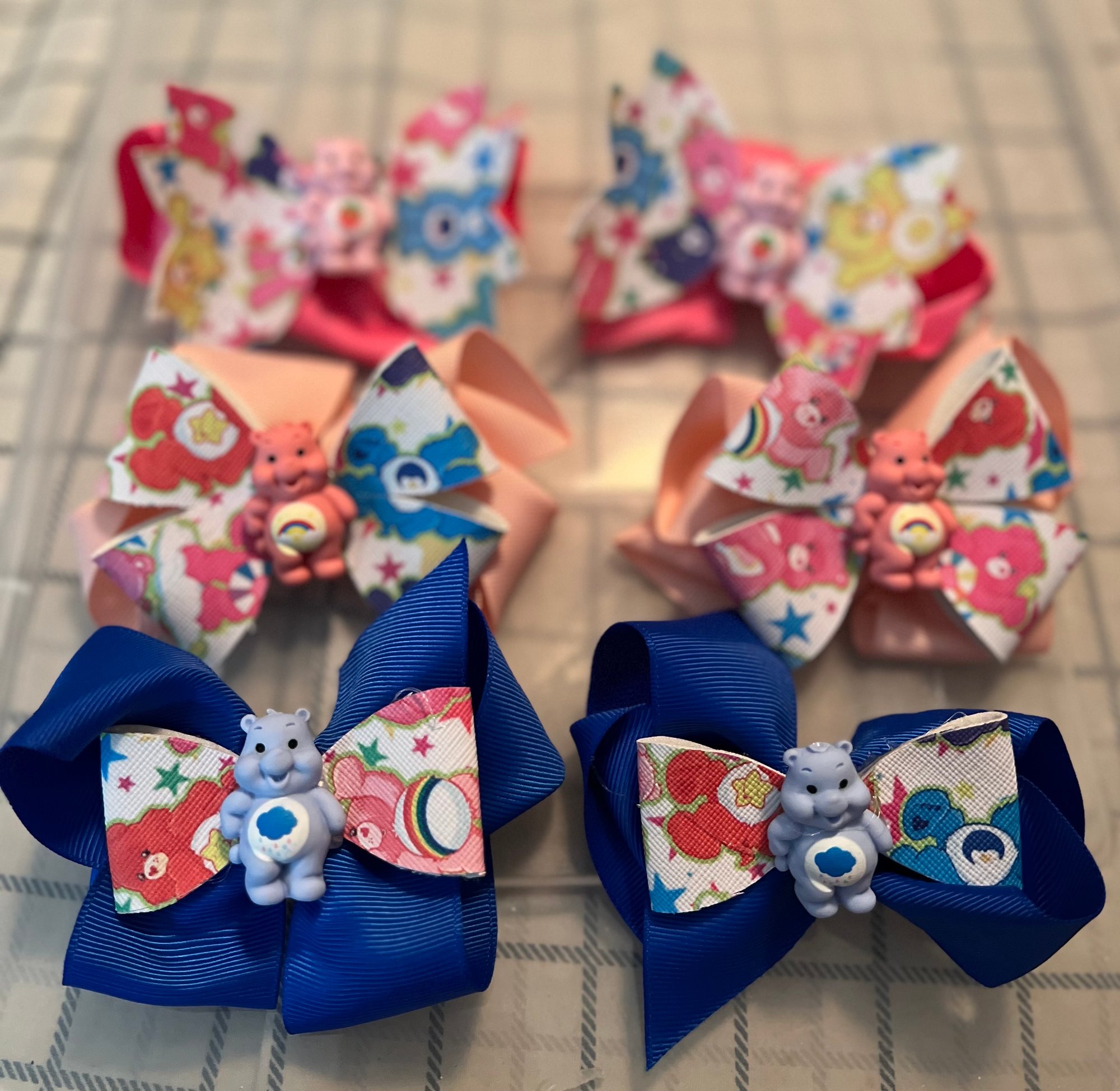 4” Bear - Combo Leather/Ribbon Hair Bows