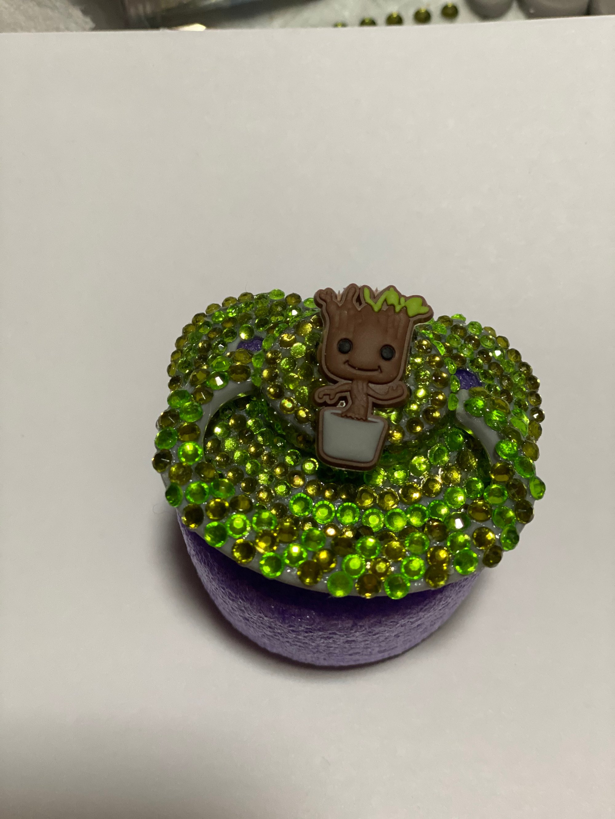 1(one) embellished adult pacifier with a Nuk 5 nipple. Baby Tree design.