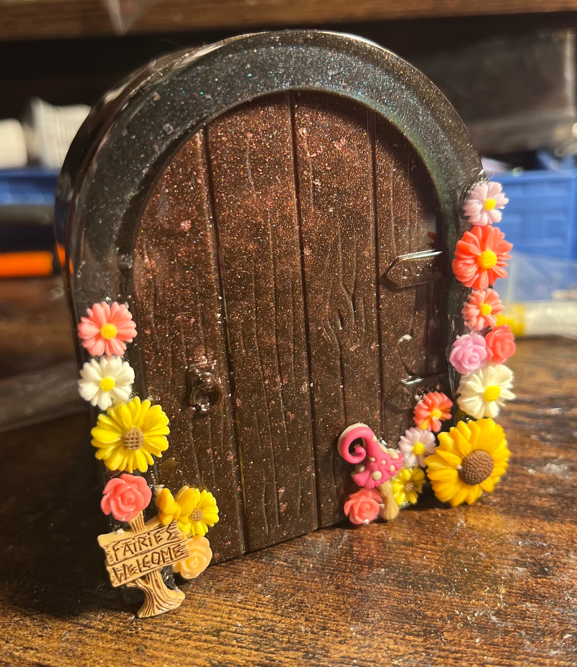 Fairy door key holder - hinged door and mounts to the wall using command strip for no wall damage.