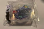 Includes a clear acrylic clamshell case for storage and a coordinated ribbon paci clip.