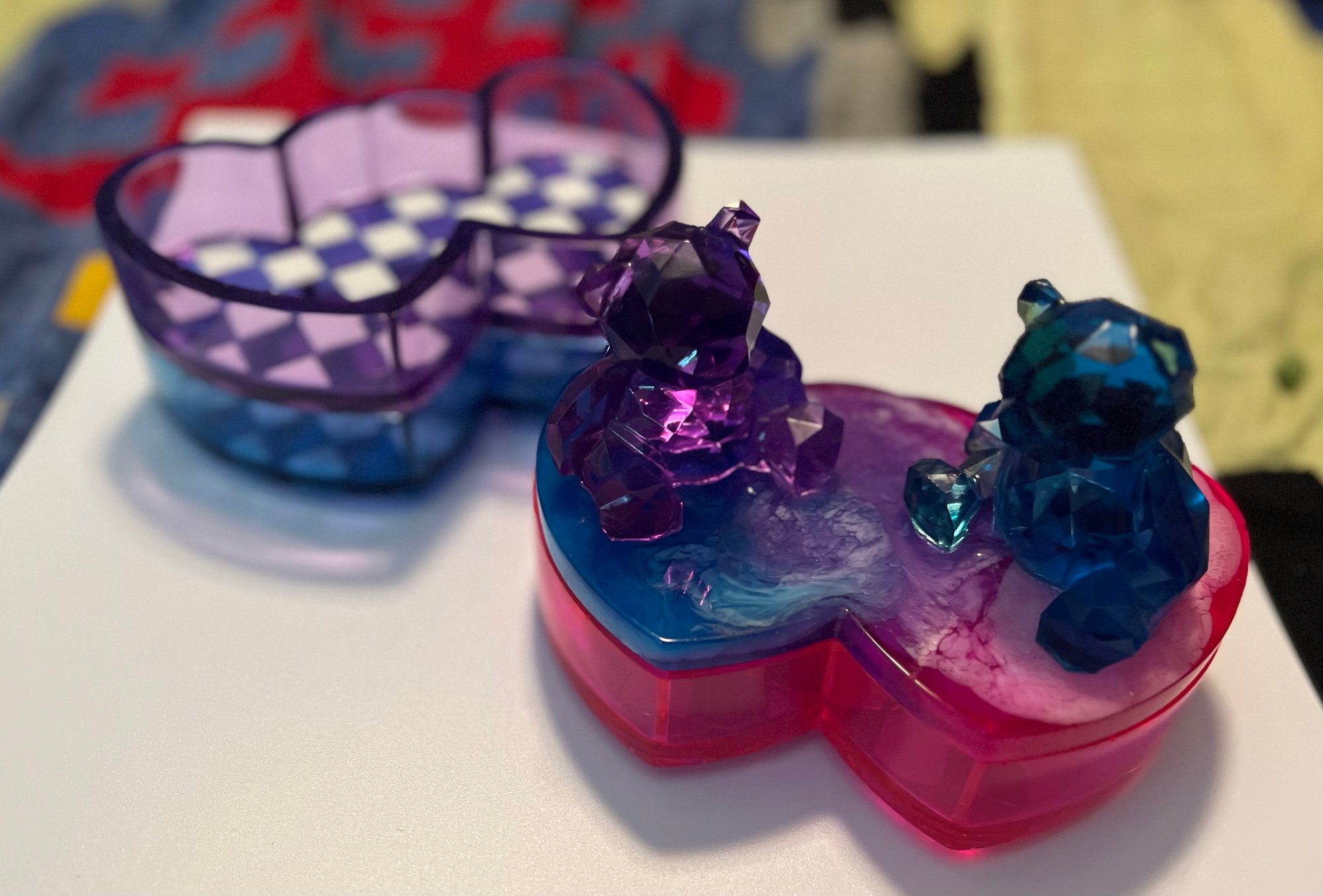 Hand poured resin heart shaped stackable trinket/jewelry boxes.